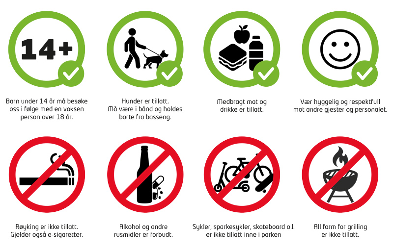 Alkohol og (andre rusmidler) inne i parken er forbudt.